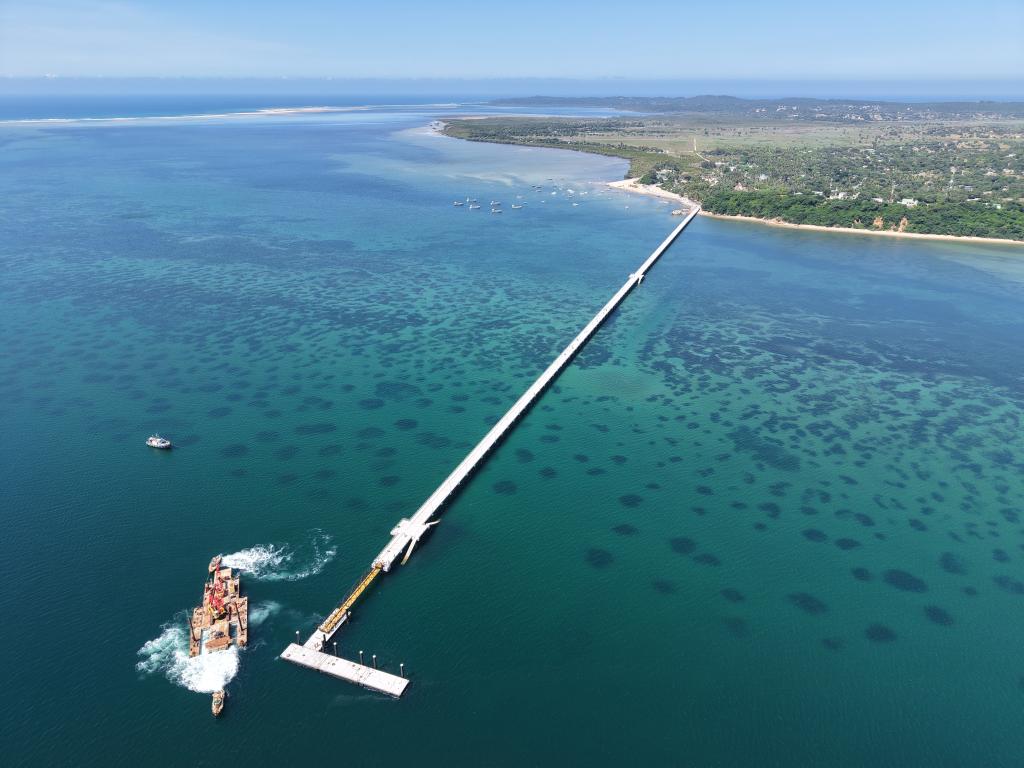 图为2月26日拍摄的由中企承建的莫桑比克伊尼亚卡岛海上栈桥通道码头。新华社发